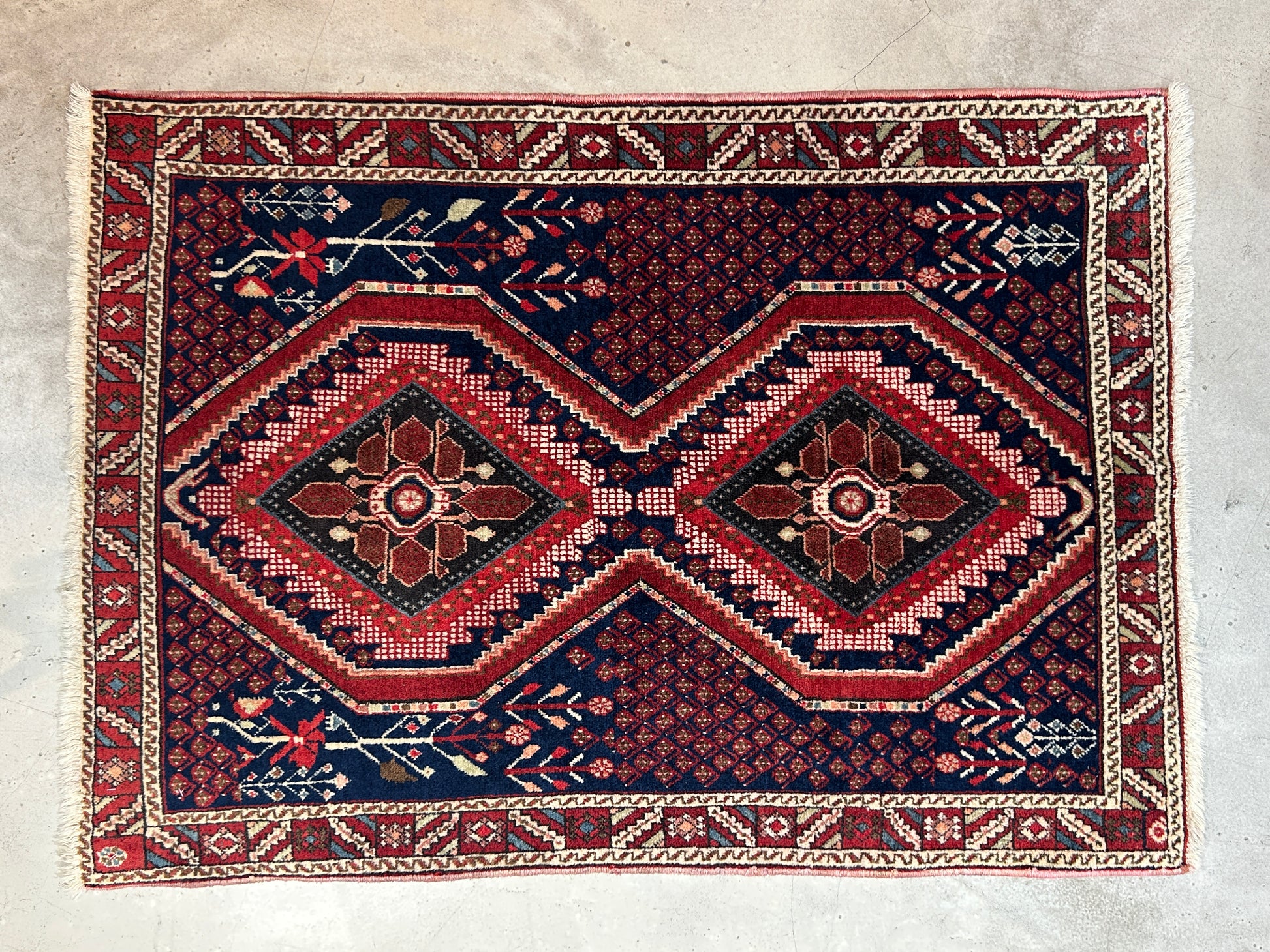 Tribal Rugトライバルラグは、羊や山羊たちと暮らす遊牧民たちの生活の道具として長い間受け継がれてきた文化であり、その用途は敷物としてはもちろん、食料や生活道具を入れる袋、テント内の間仕切りや入口にかける暖簾のようなものなど多岐にわたっていて、使い続けることを前提としているため機能性と耐久性に優れています。