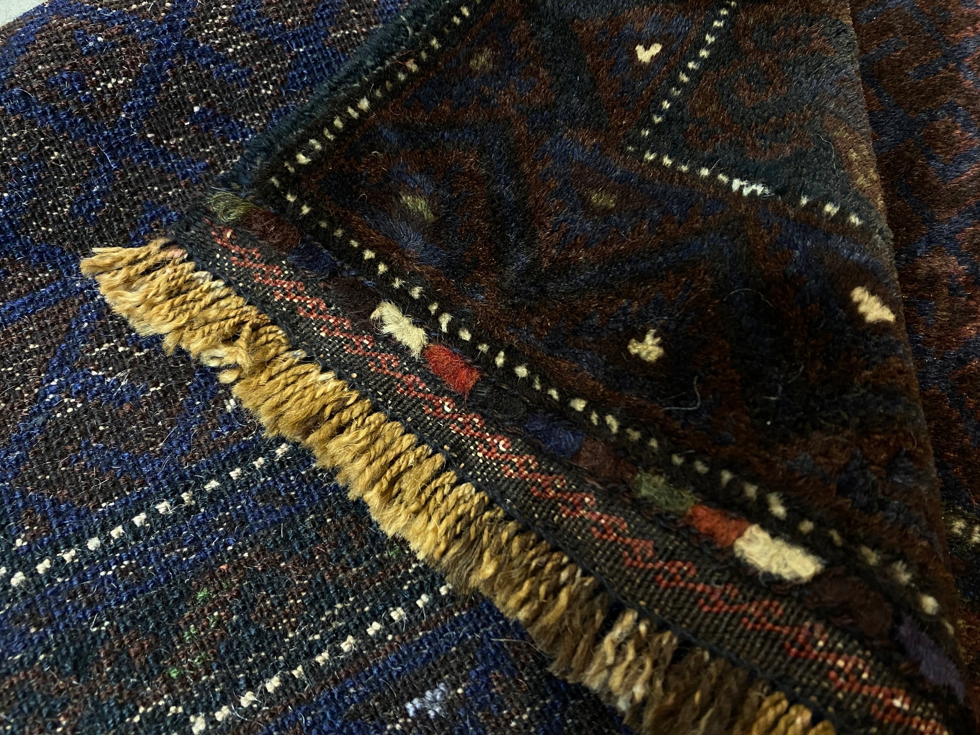 イラン東部の町や村には定住したバルーチの人たちが多く暮らし、家の中に織機をしつらえお母さんたちが家事や仕事の合間にラグを織ります。 Lead more [close]