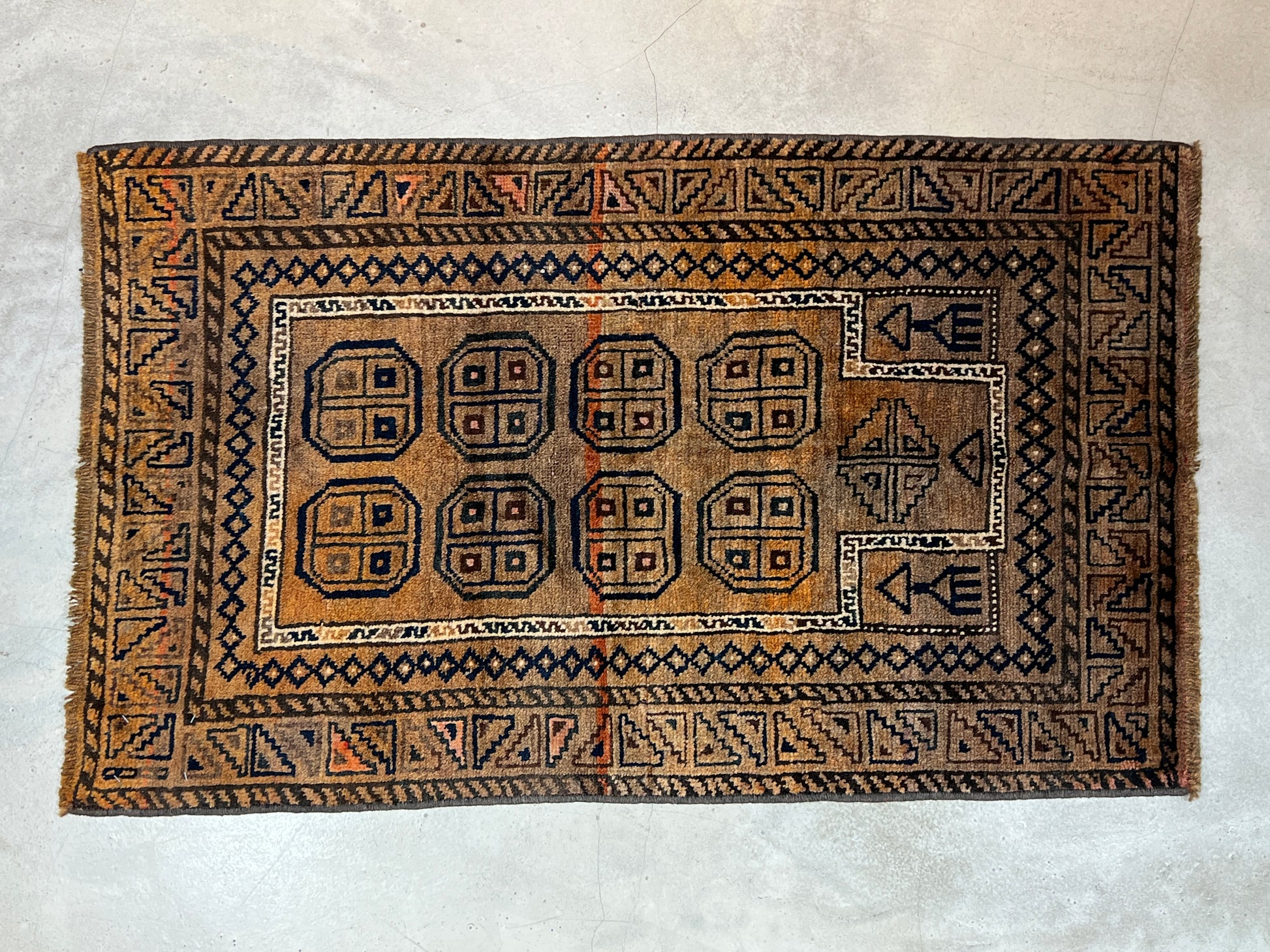 Tribal Rugトライバルラグは、羊や山羊たちと暮らす遊牧民たちの生活の道具として長い間受け継がれてきた文化であり、その用途は敷物としてはもちろん、食料や生活道具を入れる袋、テント内の間仕切りや入口にかける暖簾のようなものなど多岐にわたっていて、使い続けることを前提としているため機能性と耐久性に優れています。
