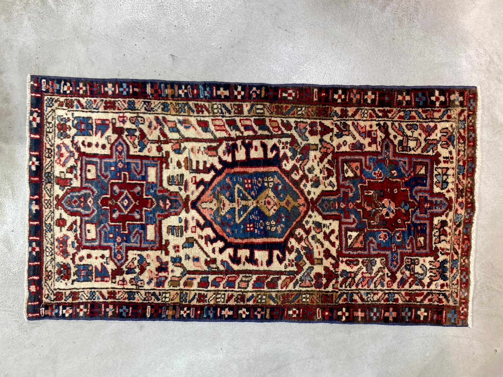 ベージュベースのさわやかなヴィンテージ感のあるガラジェのラグ。
