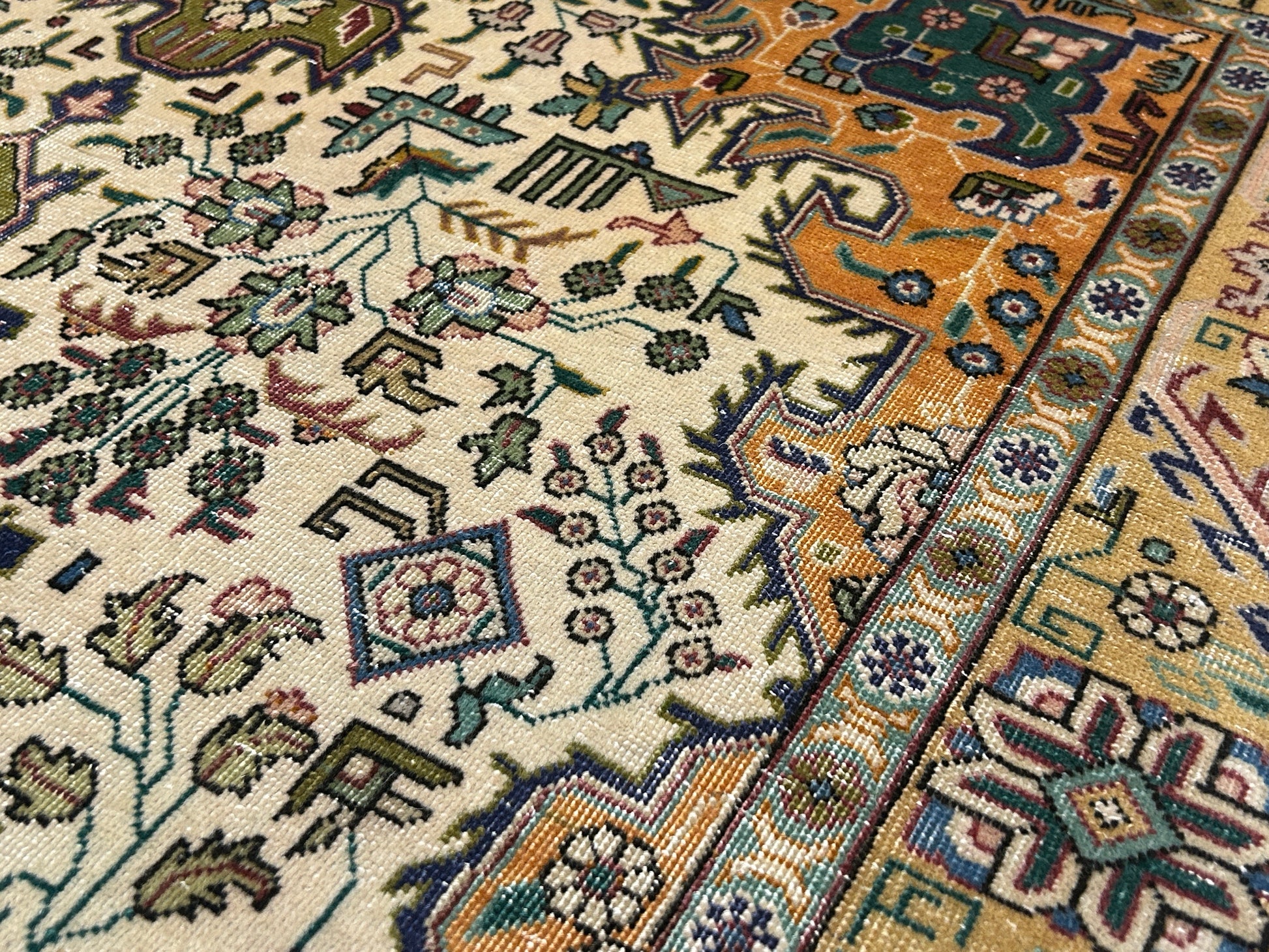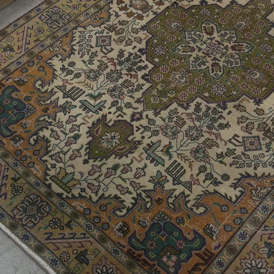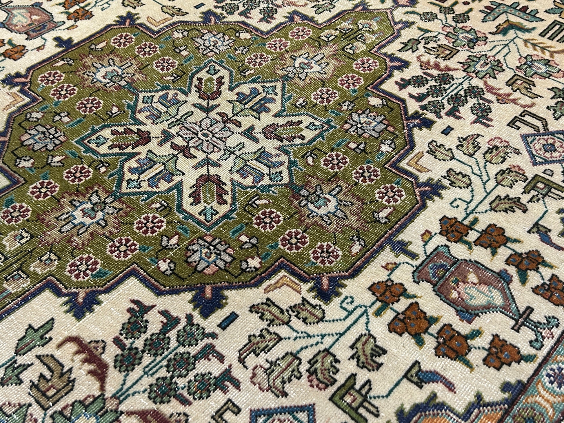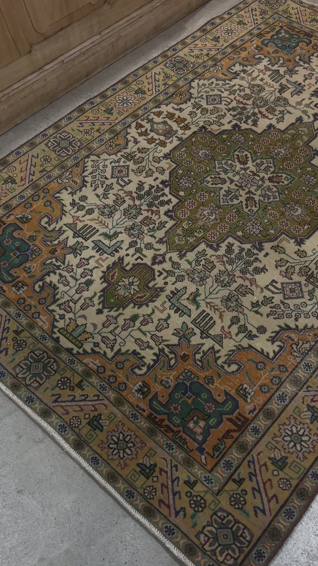 うぐいす色のメダリオンがとても気に入っている、バクシャイシュあたりのヴィンテージラグ。